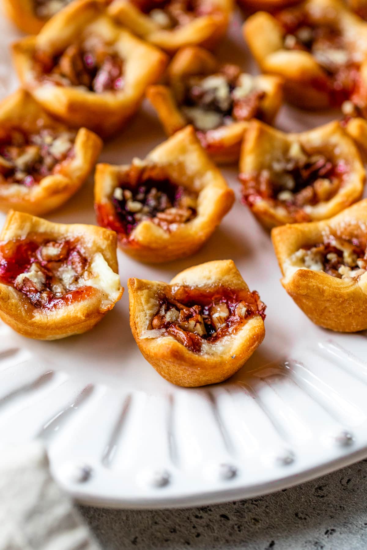 Here’s the step-by-step directions to make these easy baked brie bites with crescent roll dough. See recipe card below for printable directions.