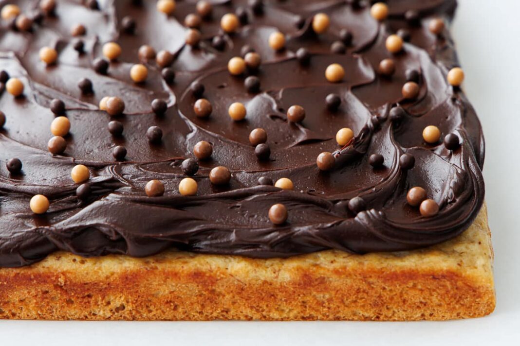 The fudge frosting is deeply and intensely chocolate—made with both melted chocolate and cocoa powder—with a silky smooth texture and shiny finish that stays soft even after being refrigerated. It’s the perfect fudgy compliment to the moist and tender banana cake, without the overpowering sweetness of other frostings (no powdered sugar in sight!)