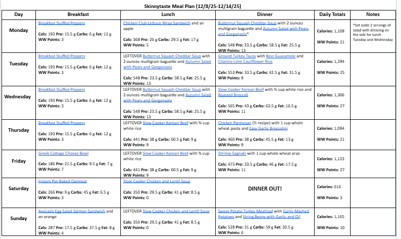 Lastly, if you’re on Facebook join my Skinnytaste Facebook Community where everyone’s sharing photos of recipes they are making, you can join here. I’m loving all the ideas everyone’s sharing! If you wish to get on the email list, you can subscribe here so you never miss a meal plan!