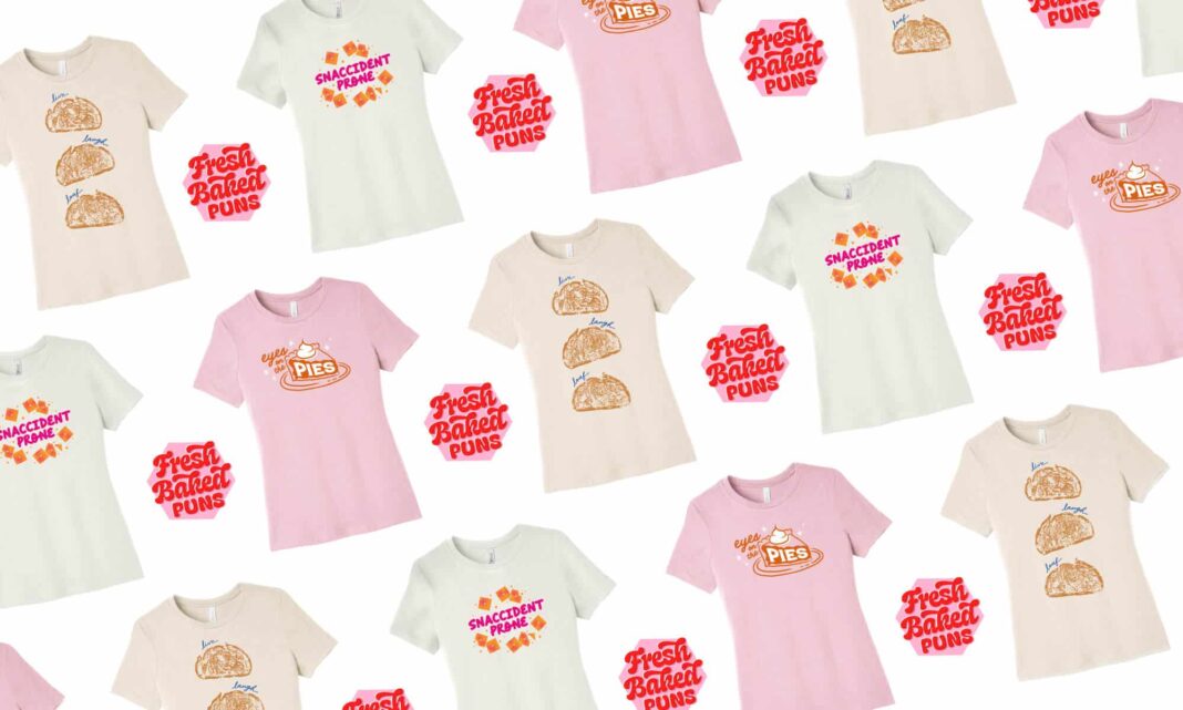 Well this is exciting… today we’re launching not one, but TWO new food pun t-shirt designs! We couldn’t decide which design to launch next… so we decided to do both. Just in time for fall baking and gifting season (hello perfect gift for the food lover in your life!)