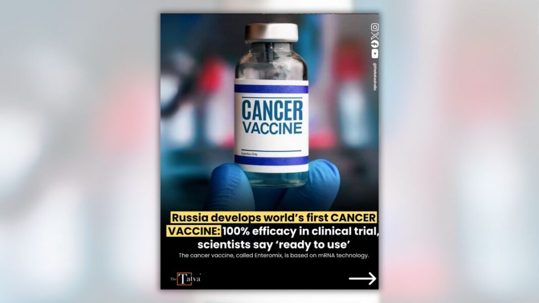 In September 2025, a number of social media posts and news stories claimed that Russia had just announced a cancer vaccine was ready for clinical use and would be free to patients. The information varied between posts, but many claimed the vaccine was the mRNA vaccine called Enteromix that “demonstrated 100% efficacy and safety” in initial trials.