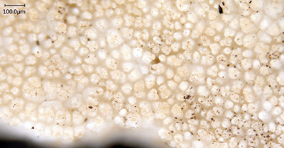 The inside of one the egg shells from the Roman amphitheater in Chester, showing the distinctive features that allowed Julia Best to determine that these were chicken eggs, eaten as eggs rather than hatched. Photo by Julia Best. Material provided by Anthony Wilmott.